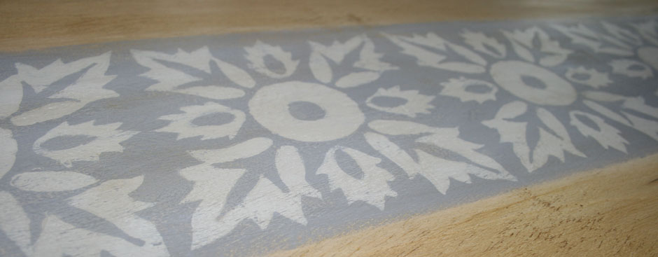 The table top has been sanded back to reveal the natural grain of the wood and handpainted across one end for a distinctly bespoke look. The edge of the table has also been partially painted to match.